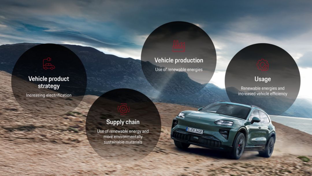 To achieve this, Porsche pursues the goal of measurably reducing CO₂ emissions along the value chain of its vehicles, using a flexible mix of drive systems that includes fully electric vehicles as well as efficient plug-in hybrids and emotional combustion engines. At the same time, the sports car manufacturer takes a holistic view of resources. Through long-lasting products, recycling processes and circular material use, Porsche aims to contribute to more ecologically sustainable solutions that can have an impact beyond the individual vehicle.
