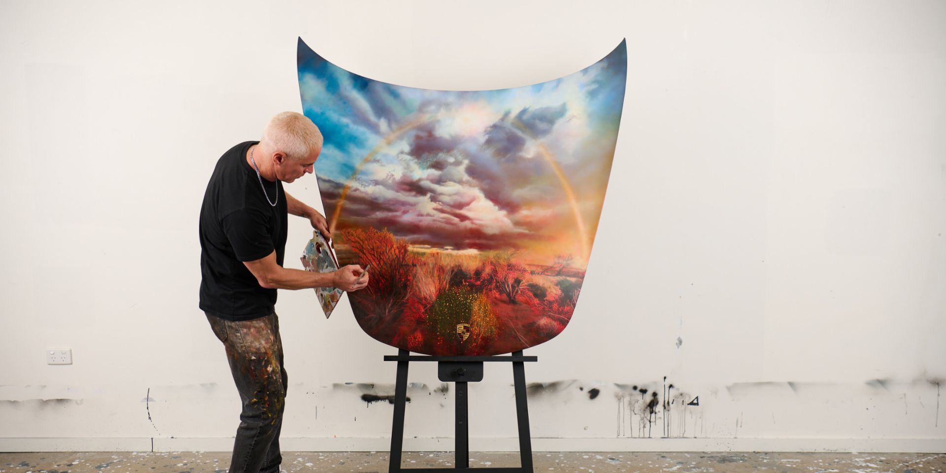 Porsche is celebrating 75 years in Australia with a bespoke Vincent Fantauzzo artwork painted onto the bonnet of a Porsche 911 Carrera, inspired by the vivid colours of an outback sunset and unveiled at the 2026 Formula 1 Australian Grand Prix.